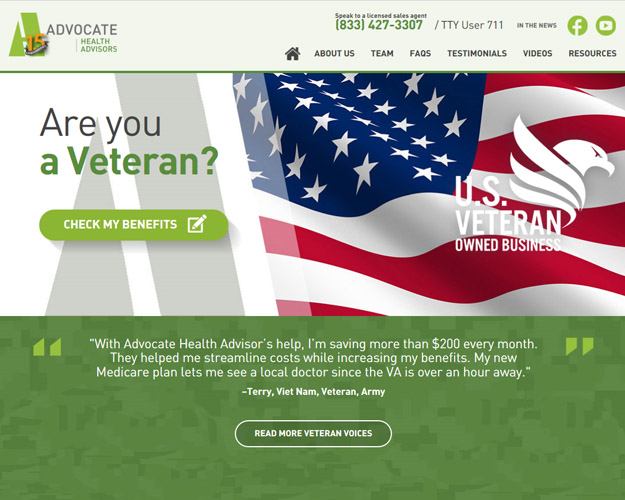 Advocate Health Advisors is Veteran owned and operated. Our mission is to help fellow Veterans with VA benefits and Medicare benefits and coordinate them to maximize care and minimize costs. Across the country, we help Veterans to enjoying the peace of mind that comes from receiving the care they need at rates they can afford.